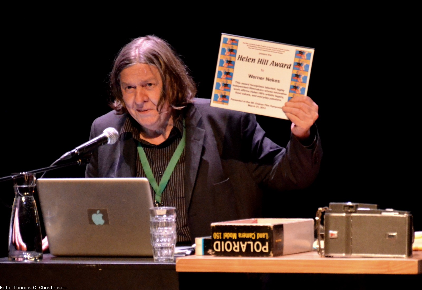 At the ninth Orphan Film Symposium, NYU’s Department of Cinema Studies, the Film and Media Studies Program at the University of South Carolina, and the Nickelodeon Theatre of Columbia, SC honored Werner Nekes with the Helen Hill Award. Helen’s mother, Becky Lewis, and Jodie Mack, a previous recipient, presented the award to Nekes at EYE (Netherlands Film Institute) in Amsterdam. Kodak contributed a $1,000 film prize.