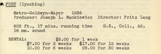 • • Craig Kridel (Museum of Education, University of South Carolina) Alice Keilher and the Human Relations Film Series, 1937-1942. Screening: a rare original 16mm print from the HR series, Fury (lynching) (1939, edited by Helen van Dongen from Fritz Lang's 1936 MGM film with Spencer Tracy, Fury) 17’